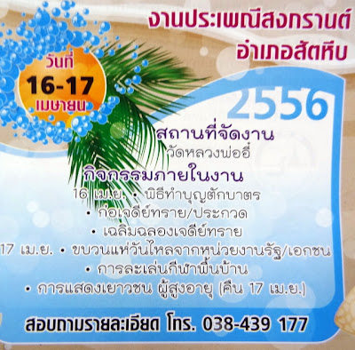 บน-กำหนดการสงกรานต์บางแสน ปี 2556 หรืองานประเพณีก่อพระทรายวันไหลบางแสน ที่บางแสนเขาจัดสงกรานต์กันที่บริเวณงานชายหาดบางแสนครับ มีจัดแข่งมวยทะเล และที่ไม่เหมือนใครคือ แข่งแกะหอยนางรม ก่อเจดีย์ทรายที่ชายหาด